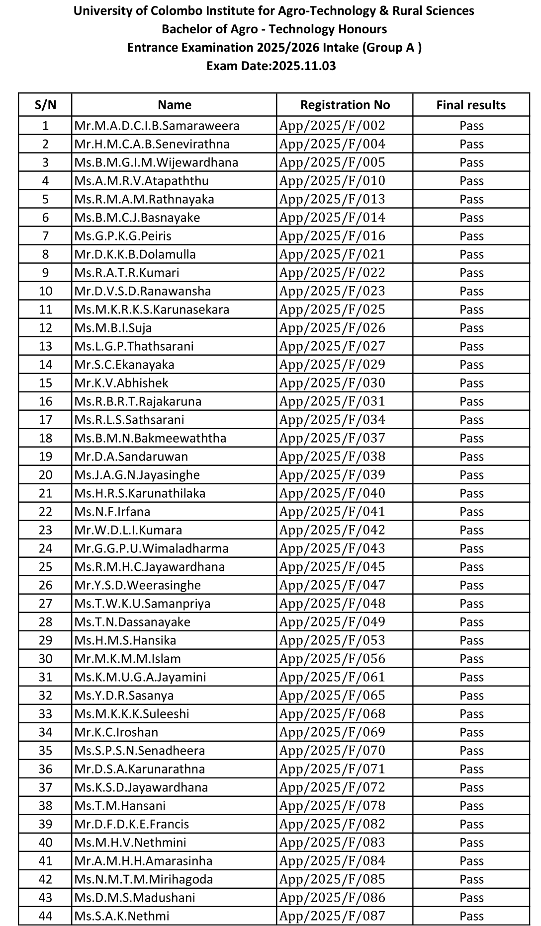 Entrance Examination Results of 17th Batch – 2025/2026 Intake By Web Admin | December 24, 2025 | Intake . NEWS |