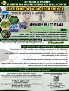New Students Intake-නවක සිසුන් බඳවා ගැනීම-புதிய மாணவர்கள் இணைப்பு 2025 – (17th Intake) Bachelor of Agro-Technology Honours