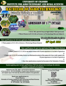 New Students Intake-නවක සිසුන් බඳවා ගැනීම-புதிய மாணவர்கள் இணைப்பு 2026- (17th Intake) Bachelor of Agro-Technology Honours